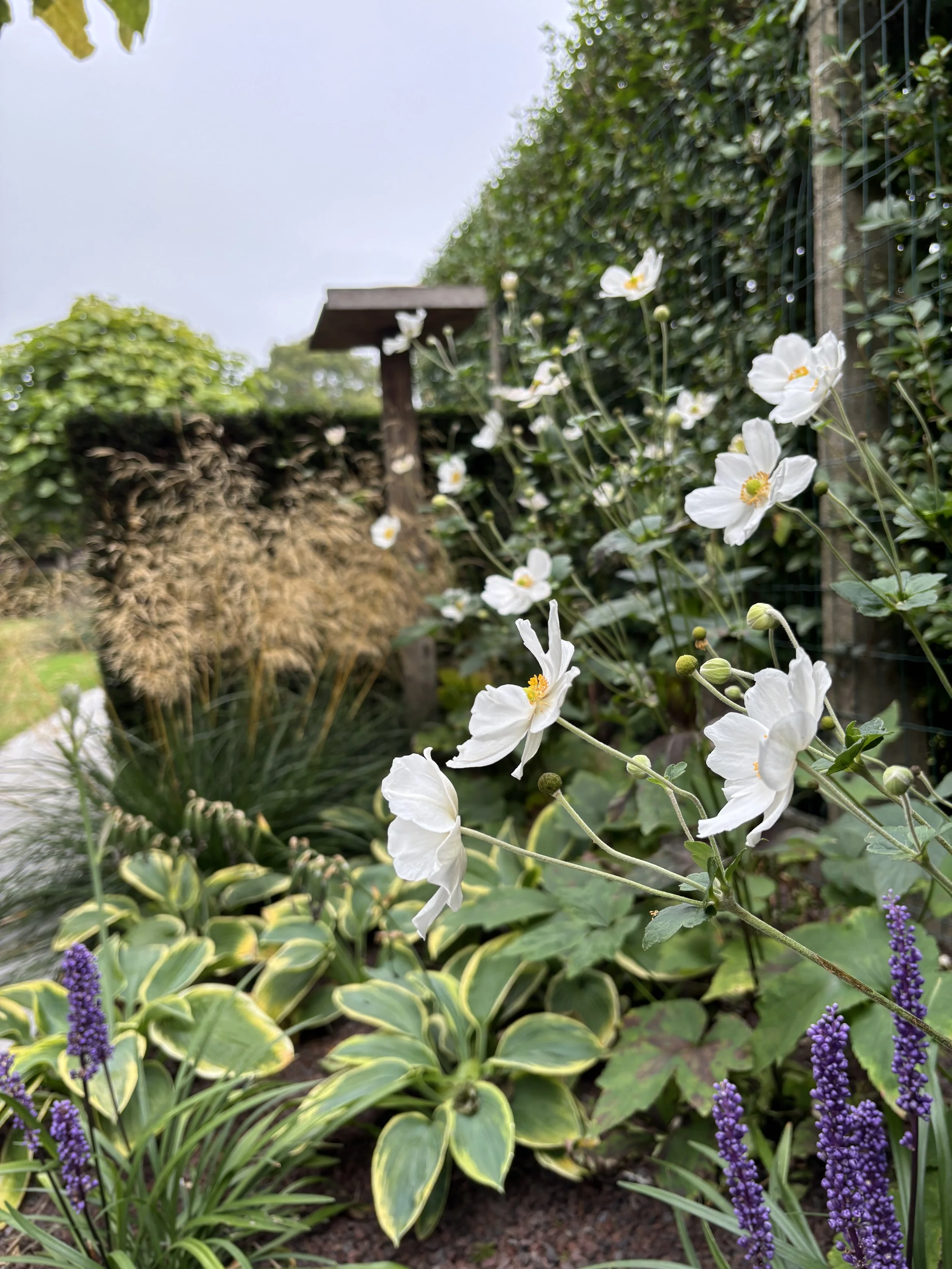 met taxusblokken en bolcatalpa’s, is behouden en aangevuld met een levendige mix van groenblijvende planten,
